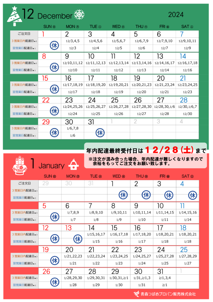 【年末年始における各種配達について】