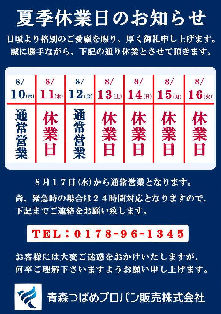 夏季休業日についてのお知らせ