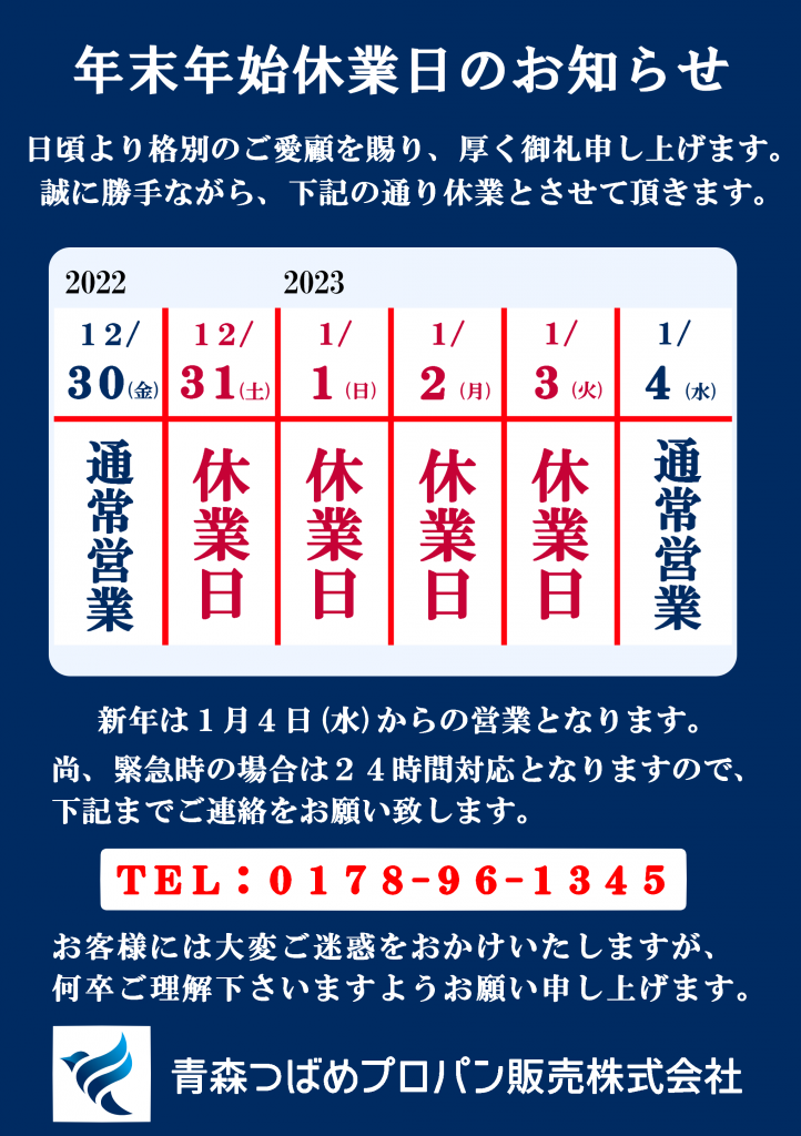 【年末年始休業日のお知らせ】