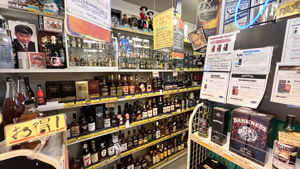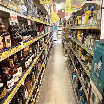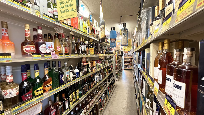 店頭販売において、輸入洋酒・日本酒・焼酎・ワイン・ビール・ウイスキーの品揃えと価格の安さは地域一番店であると自負しております。豊富な品数からどこよりも安く提供できるよう心掛けております。